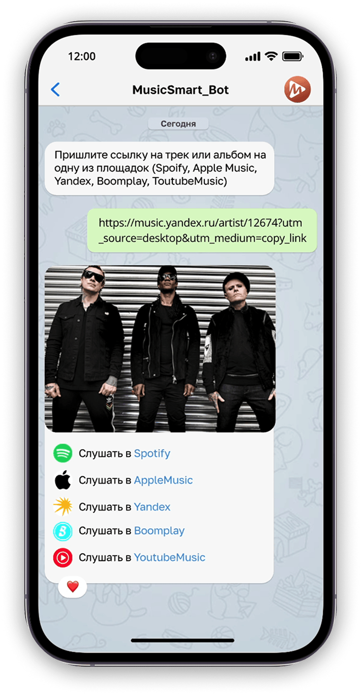 С помощью телеграм бота MusicSmart Bot вы можете генерировать Смартлинки на трек или альбом в Telegram
